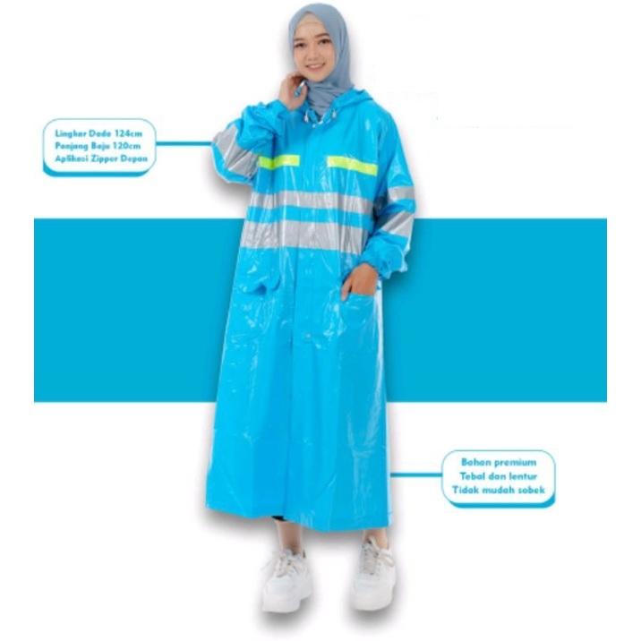 Jas hujan ini dibuat dengan sistem press sehingga anti air 100% dan sudah dilengkapi dengan skotlet pada dada dan punggung sehingga sangat aman jika anda menggunakannya saat malam hari ataupun hujan lebat.